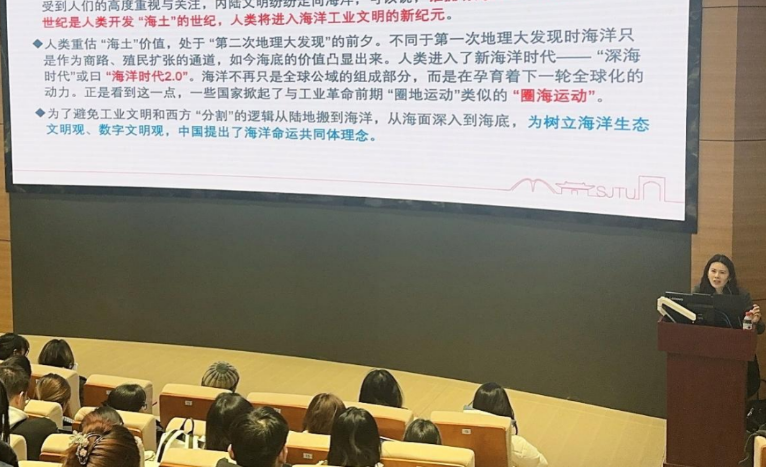 课程伊始,刘岸冰以中国共产党第二十届中央委员会第四次全体会议提出的加快建设海洋强国等重要战略部署为切入点,系统阐述了海洋命运共同体理念的时代背景与战略意义。她指出,该理念是中国应对全球海洋治理困境所提出的创新性解决方案,充分体现了中国在全球治理领域的智慧贡献。